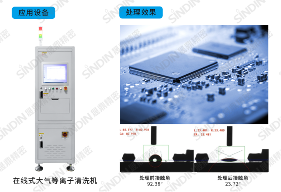 針對SMT表面貼裝,在錫膏印刷前,通過等離子活化,可顯著提高線路板潤濕性,改善表面附著力,從而改善錫膏印刷的質(zhì)量,有效避免元器件虛焊、空焊等問題,提升可靠性和表面貼裝質(zhì)量。