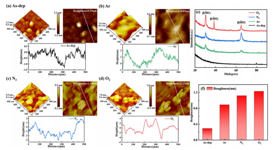 *氧化鎵薄膜在不同退火氣氛下的形貌和粗糙度 圖源網(wǎng)絡(luò),侵刪